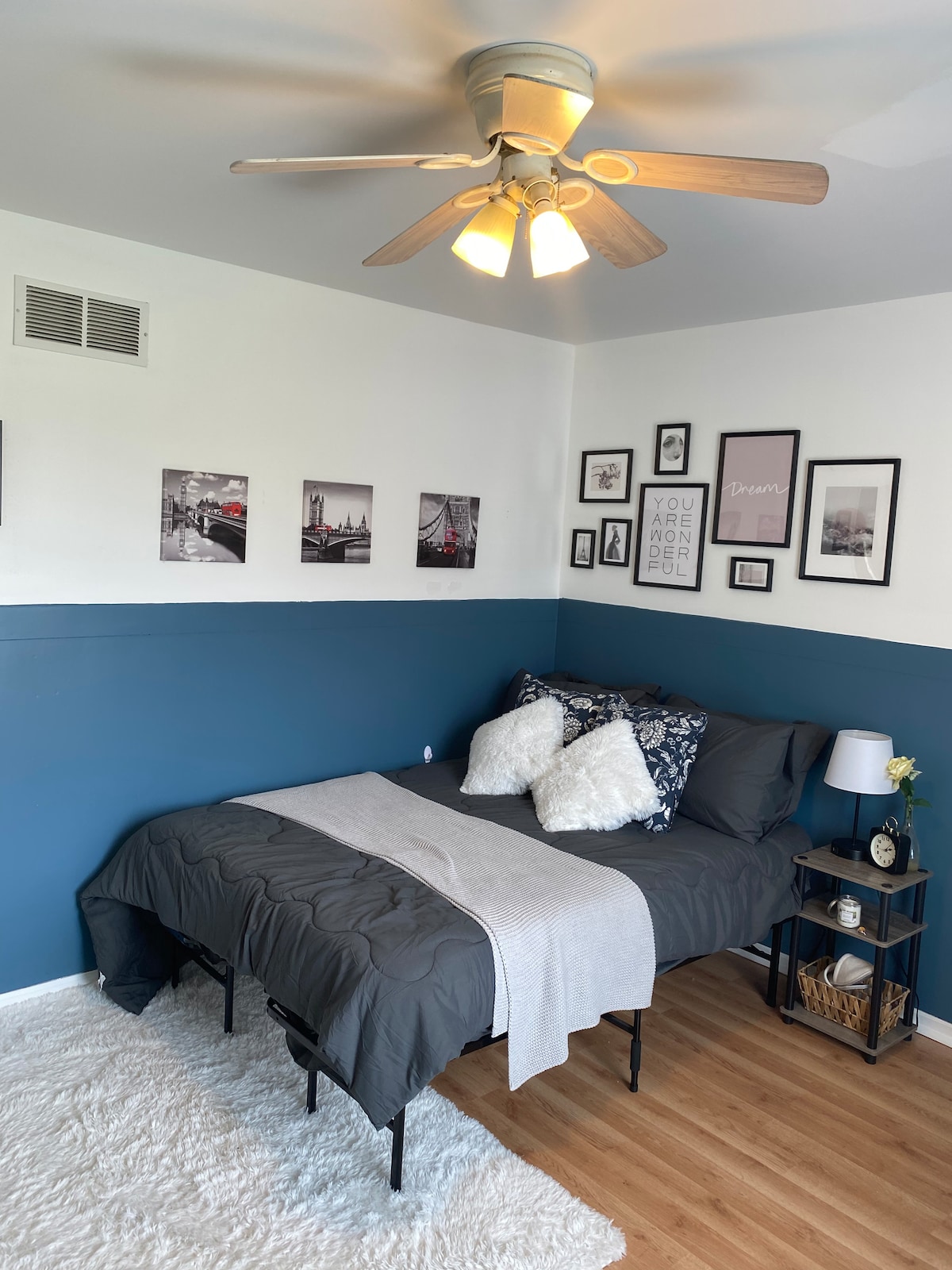 1 of 4 Private bedrooms in a charming historic home. All 4 bedrooms are listed on AirBnb. This bedroom has a double bed, TV & DVD player. Upstairs bathroom is a shared bath with walk-in shower and jet tub. There is an additional powder room on the first floor. Guests have access to kitchen and public spaces. Home is within walking distance from downtown DeKalb, and right next to NIU's lagoon.