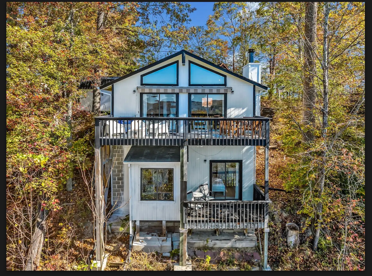 Here, you're not amid sounds of the city; you're embraced by sounds of the planet. Here, you can sleep with windows open. Nestled amid pine, poplar, and hickory trees on a wooded point into the lake, this intimate getaway features a living area with a kitchenette, a separate bedroom with a full size captain's bed, and a modern bathroom with a walk-in shower. Pet-friendly, it's a charming tiny house where you can unwind and relax no matter the time of year, amid nature, where wildlife thrives.