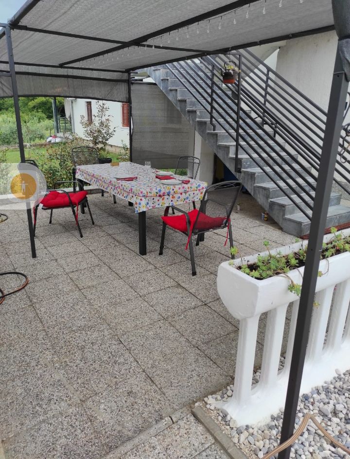 100m² großes Haus- Casa Dekovici, aus Holz & Stein. Erdgeschoss mit Küche, offenen Ess und Wohnbereich und Gästetoilette. Im ersten Stock befindet sich das Hauptschlafzimmer mit Doppelbett und Zugang zum Balkon, außerdem ein Schlafzimmer mit zwei Einzelbetten und das Badezimmer mit Glasdusche. Das 600m² große Grundstück mit Pool und Außendusche verfügt über mehrere Terrassen mit Sitz und Liege- Möglichkeiten. Parkplatzmit insgesamt Platz für 1 Auto, befinden sich direkt auf dem Grundstück.
