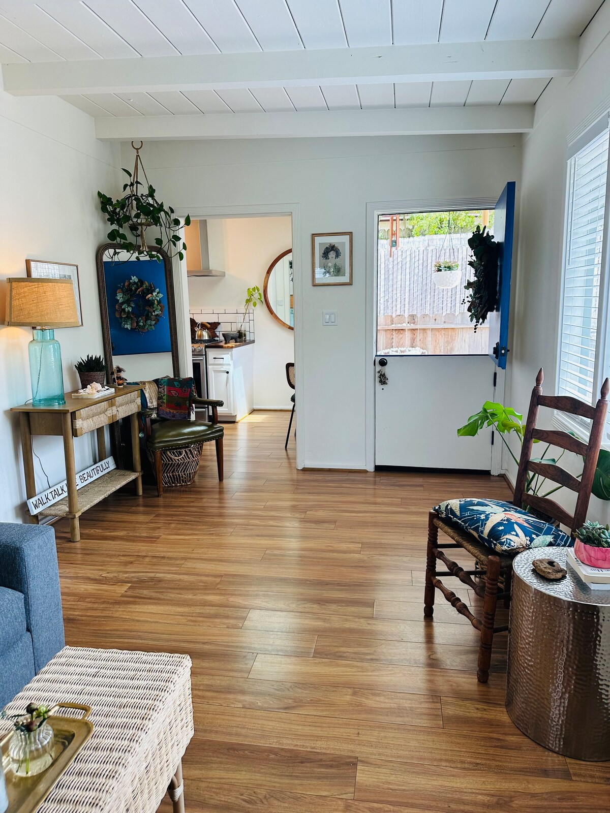 The Miller Suite was built and finished to complement the 1965 mid-century modern main home that we occupy full time. We share a walkway from the driveway and we access the same outdoor garbage cans, but we share no other circulation. This 1-bedroom, 1-bath, private entry suite is perfect for your next road trip, weekend away, proposal, babymoon, anniversary, or even a romantic place for your quiet elopement. Nestled in the oaks behind a privacy fence, the entire property feels secluded.