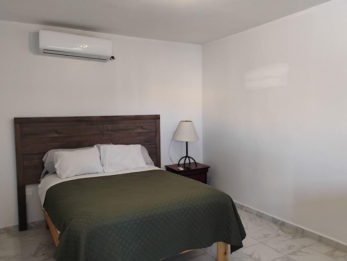 Convenientemente cerca de la zona industrial, presidencia municipal, un cine y una plaza comercial. El estudio ofrece estacionamiento techado, baño con agua caliente, cocina equipada con parrilla de inducción, frigobar, microondas y utensilios. Cuenta además con escritorio, TV de 32” con Roku, WiFi de 60 Mbps, dos camas king size, un sofá amplio, toallas y aire acondicionado de dos tiempos. A pocos metros hay una tienda de conveniencia, contamos precios corporativos con opción de facturación.