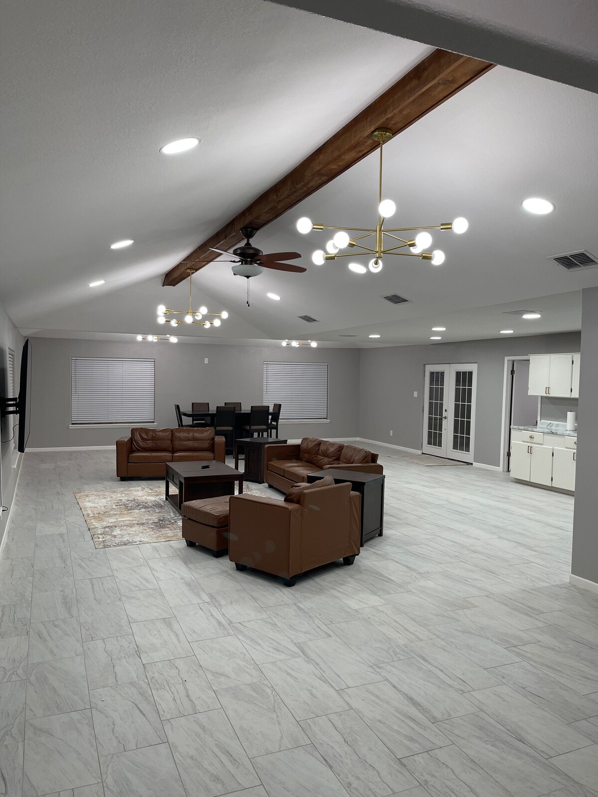 "A Touch of Color" is a vibrant 4-bedroom home in a newly built neighborhood, each room a different color! Featuring a 3-in-1 pool/billiards, ping pong, and dining table, an arcade/office with 3 machines and a 2-person desk, 3 TVs, a full surround sound, a fully equipped kitchen, lots of dining space, a 2-car garage, and more—all in a unique, fun space perfect for families, groups, or work trips! Relax, play, and create memories in style!