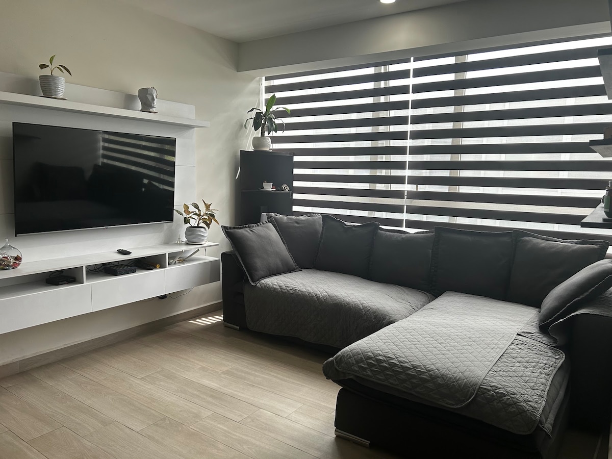 Ground floor apartment with patio, all amenities. 2 bedrooms: -One with a king size bed -The other one with a queen bed - A sofa bed. Perfect for business or family trips. Excellent location, quiet and safe area, close to the Insurgentes theater, Plaza Manacar