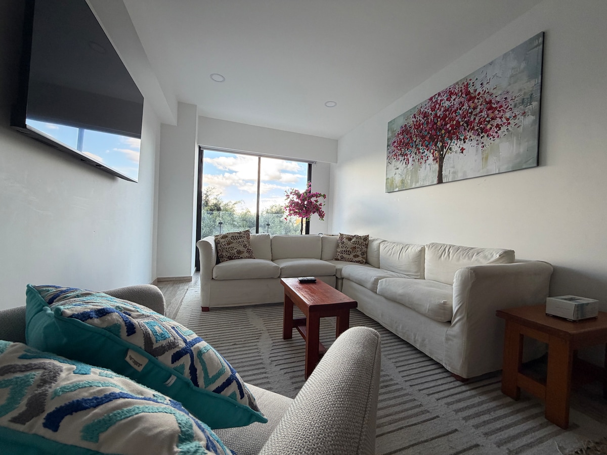 Apartamento ubicado en piso 15 dentro de exclusivo complejo al sur de la CDMX Ubicación estratégica, será fácil planear tu visita y disfrutar de sus amenidades: alberca, cine,cafetería, asadores, carriles de nado, salón inglés, gimnasio, minisuper, boliche, asadores, lavandería, golfito, cancha de futbol,sky cinema,restaurante, ludoteca, teen lounge etc. Cerca de Coyoacán, plazas comerciales Y supermercados. Llegarás fácilmente a colonia Roma, Condesa y Centro Capacidad de 2 a 6 personas .