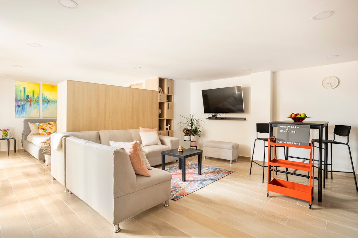 平均评分 4.86 分(满分 5 分),共 51 条评价时尚的Roma Sur Loft:高档生活,城市景观。