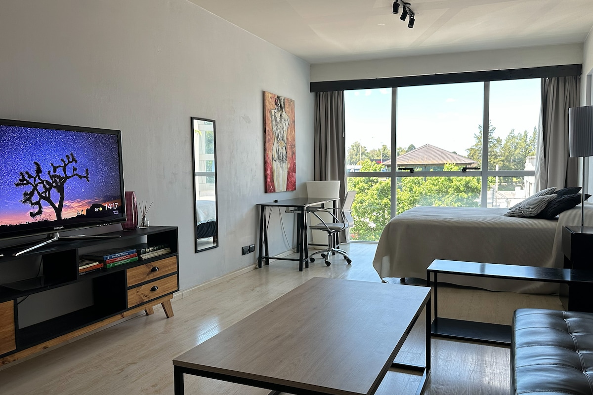 🏠 Bienvenidos a nuestro monoambiente en Campus Vista, un moderno complejo residencial en Pilar con todas las comodidades para una estadía confortable. Seguridad privada las 24 hs, dos piscinas (una climatizada), sauna, gimnasio, área de cowork y cochera cubierta son algunos de los amenities que posee el lugar. 🛏️ Perfecto para hasta 4 personas, el espacio cuenta con una cama queen, sofá cama doble y una terraza privada ideal para relajarte.
