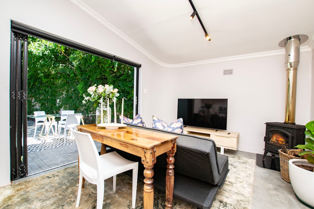 Relax in this stylish, modern, solar-powered loft in Mostertsdrift, Stellenbosch's prime neighbourhood. The open-plan kitchen, cozy living area, and private balcony with stunning mountain views to enjoy your morning coffee or a glass of wine, is perfect for up to three guests. Just a short walk from Lanzerac Wine Estate and close to cafes, shops, and dining spots. Enjoy scenic hikes or mountain biking in Jonkershoek Nature Reserve, wine tasting, or simply unwind—everything is at your doorstep!