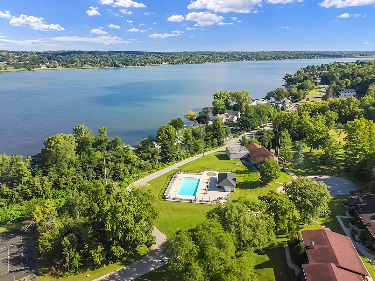 Enjoy your stay at our family's Serene Lake condo with outdoor pool. NEWLY UPDATED Stylish and comfortable with amenities for any family to feel at home. Part of Interlaken community and set on Lake Como, we are surrounded by peaceful woods and often seen wild life, yet a quick drive into down town Lake Geneva, William's Bay and Fontana. Enjoy golfing, dining, water sports and all the region has to offer, then cozy up and relax with a view. NO RV, BOAT or TRAILER parking is allowed.