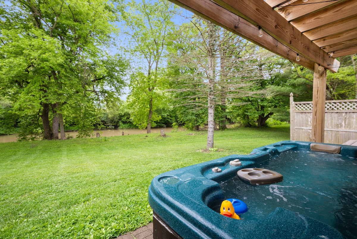 Come and enjoy our newly renovated Tri-Level "Farmhouse" Home! -Large and relaxing Hot tub, with ample outdoor seating, fully fenced in back yard -3 KING beds, and 2 Twins between 4 bedrooms Lots of activities-Pool table, Chess table, Golden Tee Classic, Mrs. Pacman, Ping Pong, Foosball, and board games -Accommodates up to 8 people - Children and pet friendly -Located in a quiet, safe neighborhood - 4 min to Ball State, 7 Min to Downtown Muncie -Roku Smart TV's in each room Relax, and have fun!