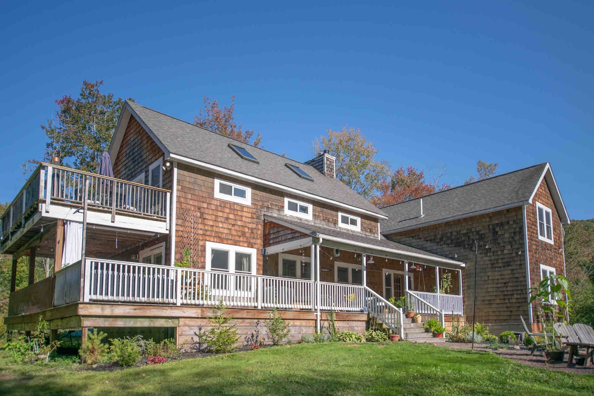 Close to several ski resorts and surrounded by mountains and 5 acres of lawn and woods, our home is a guaranteed relaxing time. Wildlife greets you while the sun comes up over the mountain. Enjoy grilling on gas or over coals on the outside kitchen. Light an outside fire on the deck and watch the sunset. Play some corn hole or sled down our extensive lawn. Antiquing in town , free summer swimming pool, skiing and hiking, along with many other destinations, in every season.