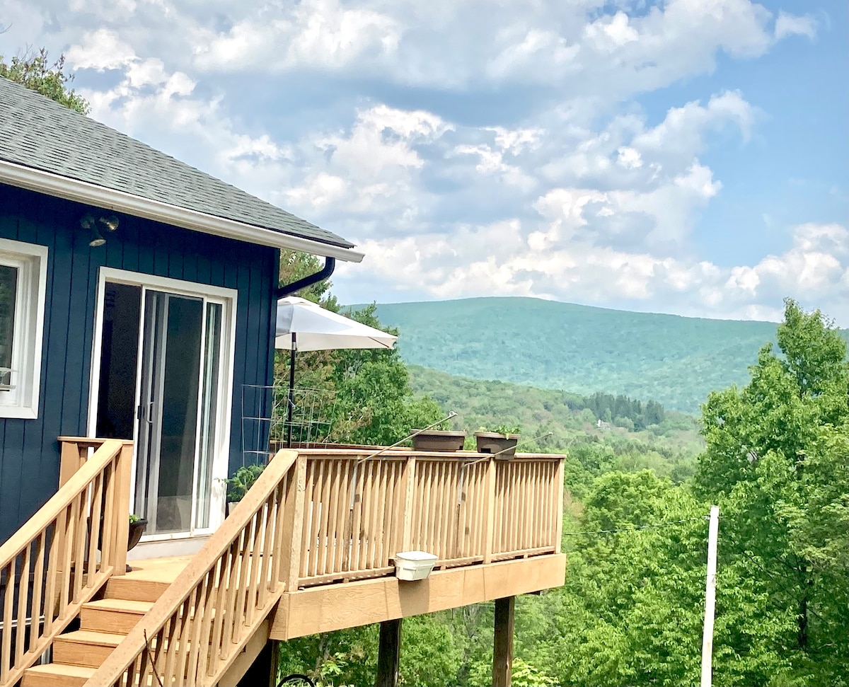 Scenic 2BR Catskills cabin just 2 hours from NYC! Enjoy stunning mountain views from the private deck, fast & reliable WIFI for remote work, and easy access to Belleayre skiing, lake swimming, & tons of hiking trails. Peaceful and private—perched above a quiet road with regular visits from deer, turkeys, bunnies, and songbirds. Perfect for family getaways, ski trips, or a scenic work-from-home stay. Follow us @berushka_cottage for more!