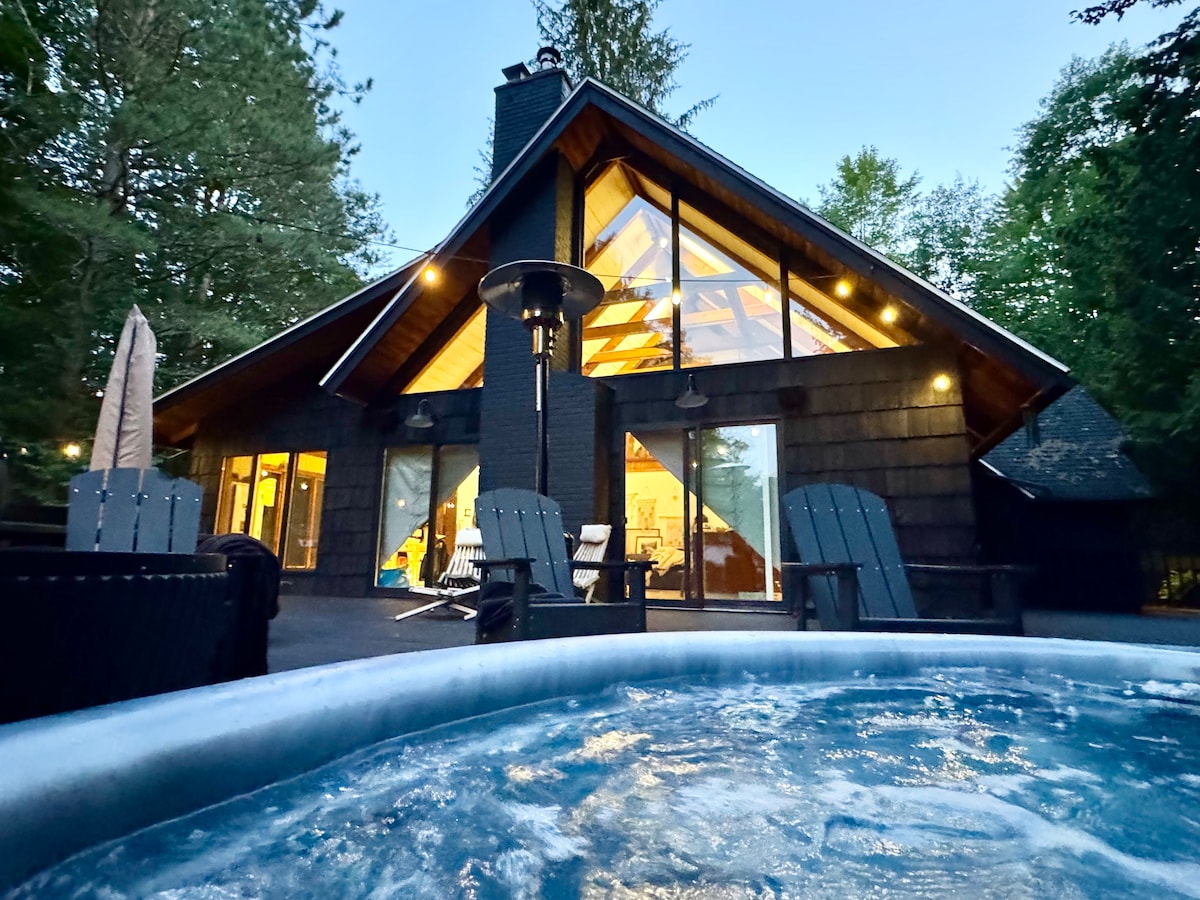 Embrace a wellness-focused retreat in nature . Our expansive 2025 large cedar deck with a cedar hot tub, designer lounge and dining, Sonos indoor/outdoor audio, a premium barbecue, Wander the creek trail, then soak and stargaze for a truly wellness-forward mountain escape. Highlights - 5 wooded acres with a private creek trail - Expansive 2025 upgrade: new cedar deck - Cedar hot tub for restorative soaks - Designer outdoor lounge and dining - Sonos indoor/outdoor audio - New weber BBQ