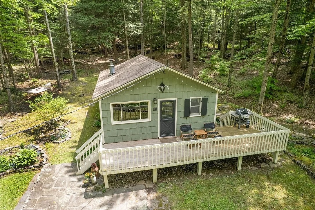Relax and unwind in this historic converted one-room schoolhouse. Built in 1870, the Parkston Schoolhouse served all grade levels in the Livingston Manor area. The schoolhouse was retired and converted to a cozy cottage style home in the mid 20th century and has recently been renovated into a stylish tiny home getaway. The home is tucked into the hillside along the beautiful, winding Willowemoc Creek and is set amidst a lush Catskill landscape just a five minute drive from Livingston Manor.