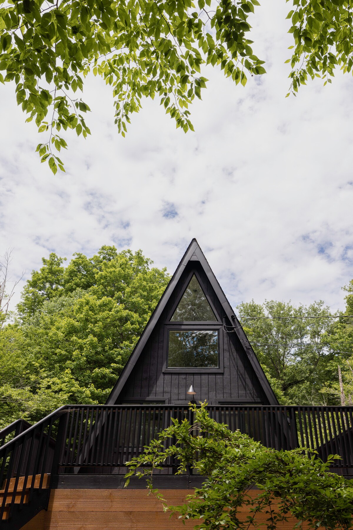 As seen in Vogue, Domino, Hudson Valley Magazine, and more. NightFox A-Frame is an all-black, architecturally significant cabin located in the Western Catskills hamlet of Livingston Manor. With the local area known for foodie-centric dining experiences, breweries, fly-fishing, hiking, and more, this year-round, 2-bedroom stay is the perfect escape from the city. The a-frame is known for its interior style, with a focus on Scandinavian comfort with 70s mod influence. @nightfox_aframe
