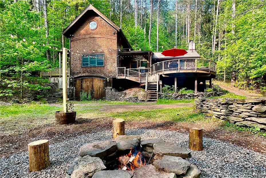 卡茨基尔山度假屋,带火坑、热水浴缸和桑拿
