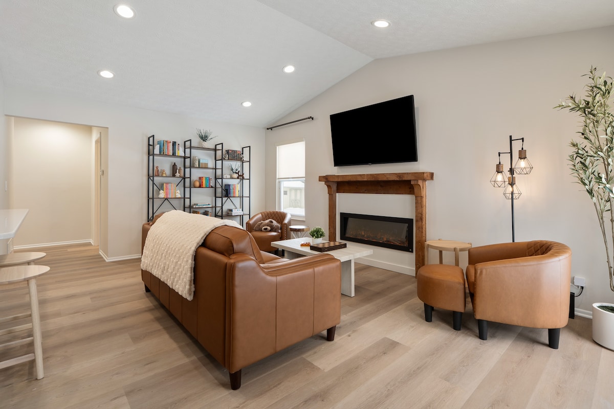 🔷Key Features🔷 ☀Single-level, ranch style home ☀Free street parking in front of the home on a quiet one-way street ☀Courtyard patio with outdoor dining and BBQ grill ☀Dog-friendly w/a fee — bring your furry friends; they like vacations too! ☀Electric fireplace ☀0.2mi to Downtown Delaware ☀0.4mi to Ohio Wesleyan University ☀Full-sized washer and dryer ☀Fully equipped kitchen ☀Central heating and cooling (no window AC units!) ☀Owned and managed by a local family with 25+ years of residency