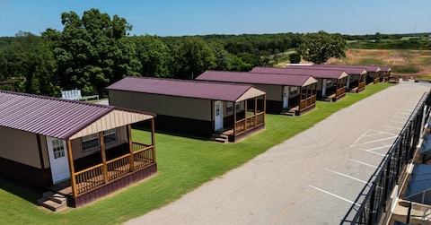 Our three cottages built in 2017 are on a 65 acre Horse Ranch with a Winery and Vineyard. Each sleeps up to six and are very private. Second bedroom is a loft built over the bathroom , 54" ceiling peak designed for kids but adults enjoy the space with two single beds and is open to the main floor. Located on Monkey Island, Grand Lake, Oklahoma. Pets are always welcome at Monkey Island Cottages with no additional up-front fee. A "house" is needed if the pet is left alone in the Cottage.