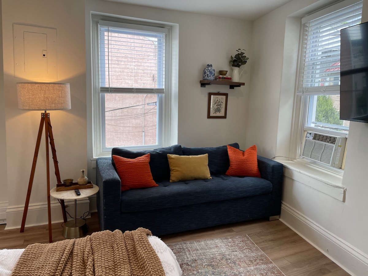 Our newly renovated cottage in Philadelphia is in the exciting, hip neighborhood of Manayunk. Enjoy countless indoor and outdoor restaurants, walking along Main Street shops, biking, and hiking on local and nearby trails. Sit on the back patio and watch the happenings from above. Private parking is free and safe, including a NEMA 14-50 receptacle for your EV/plug-in hybrid. Please bring your own plug-in device. Commercial License #890 819 Rental License #893142