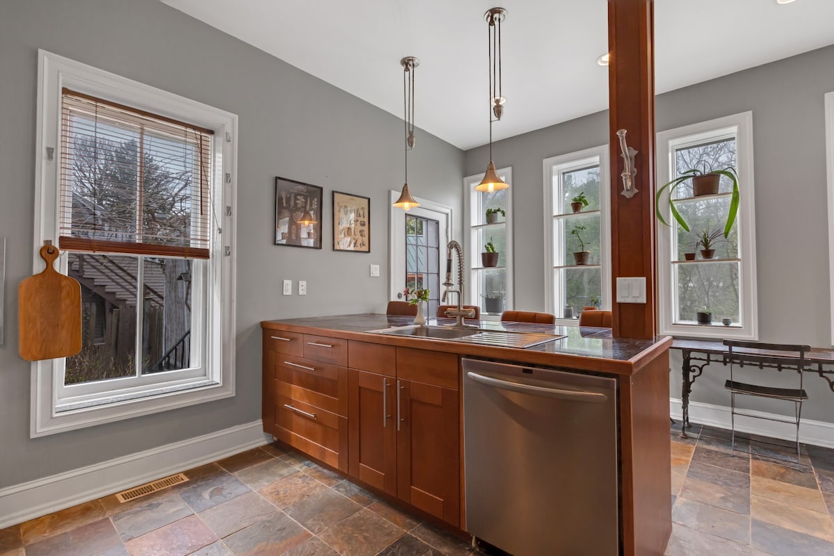 Our newly renovated cottage in Philadelphia is in the exciting, hip neighborhood of Manayunk. Enjoy countless indoor and outdoor restaurants, walking along Main Street shops, biking, and hiking on local and nearby trails. Sit on the back patio and watch the happenings from above. Private parking is free and safe, including a NEMA 14-50 receptacle for your EV/plug-in hybrid. Please bring your own plug-in device. Commercial License #890 819 Rental License #893142