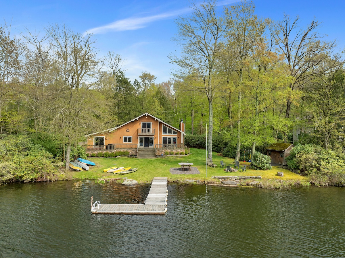 Approximately two hours from the GW bridge - this beautiful country home is located directly on the Delaware River. The house features a full kitchen, a large dining room, and two porches that overlook the river. Watch the eagles, warm up by the fireplace, ski, hike, fish, canoe, swim, eat and laze about. With hi-speed cable and WiFi, tons of space inside and out, this house is perfect for a getaway, staycation, or for families and couples looking to remote-work.