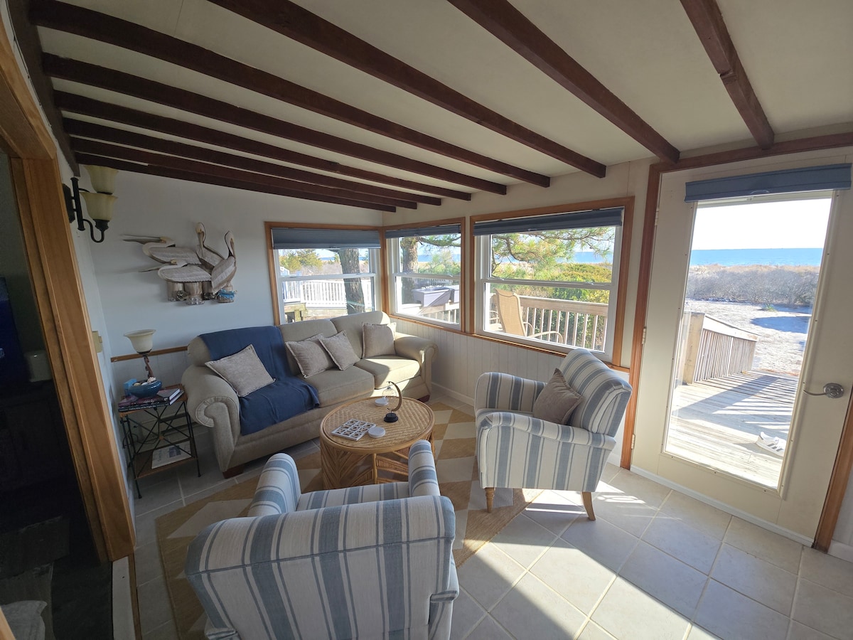 Relax with the whole family at this peaceful beachfront home located on the scenic Broadkill Beach in Delaware. The house has 4 spacious bedrooms and 2 and 1/2 baths with a full kitchen and a dining room with direct oceanviews. Lounge in the sunroom with panoramic views of the ocean and walk right over the dunes to the beach anytime. Primehook Refuge is a 5 minute drive, and a 15-20 min drive leads to Lewes beach, Cape Henlopen Park and Rehoboth boardwalk for restaurants and nightlife fun.