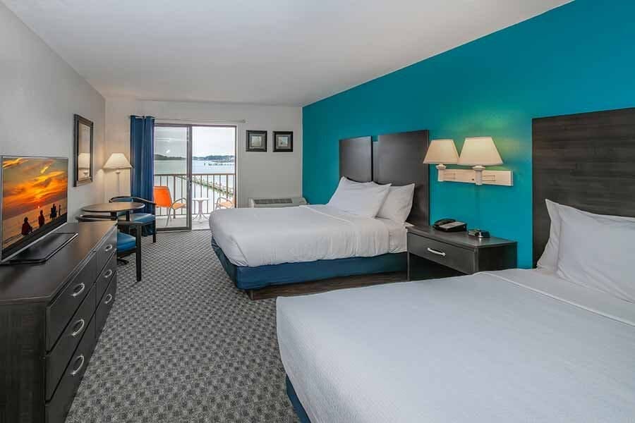 Relax in this spacious room featuring two double beds and your choice of a private balcony or walkout patio overlooking the scenic Rehoboth Bay. Equipped with modern conveniences like a kitchenette, complimentary Wi-Fi, and a large flat-screen TV, it offers a comfortable and convenient stay. Perfect for guests seeking a peaceful retreat with easy access to the beach and local attractions.