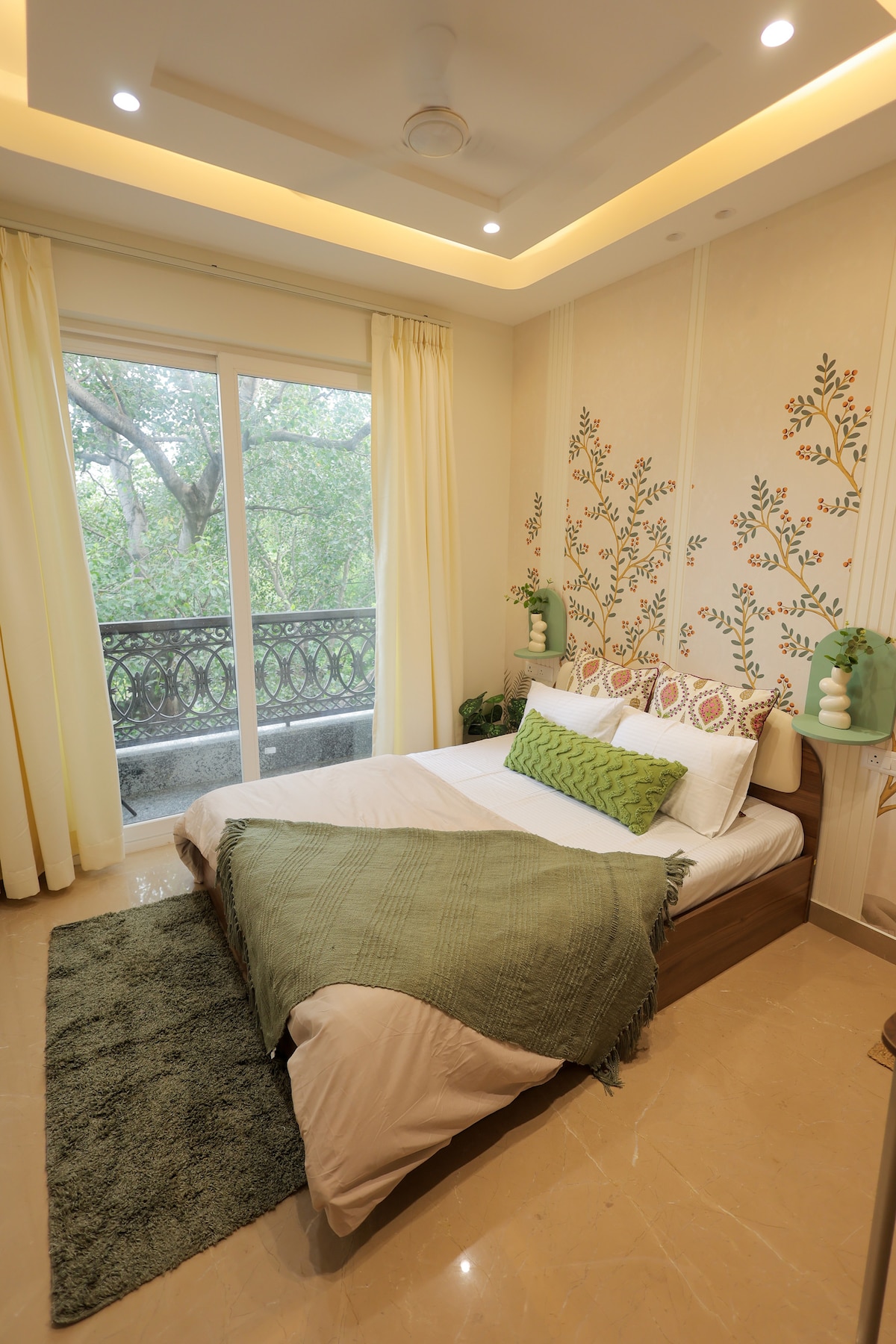 Stay at our spacious 2BR Park-View Retreat, 8.5 km from airports & 15 min ride to the metro. Enjoy airy balconies, park views, mahogany/wooden beds, a fully-equipped kitchen, high-speed Wi-Fi, Smart TV, complimentary toiletries, & local recommendations. Relish home-cooked meals, explore nearby market & malls, and unwind with serene jogging paths. Experience top-notch hospitality with flexible check-in/out, laundry services & optional airport transfers. Book now for a memorable Delhi stay!