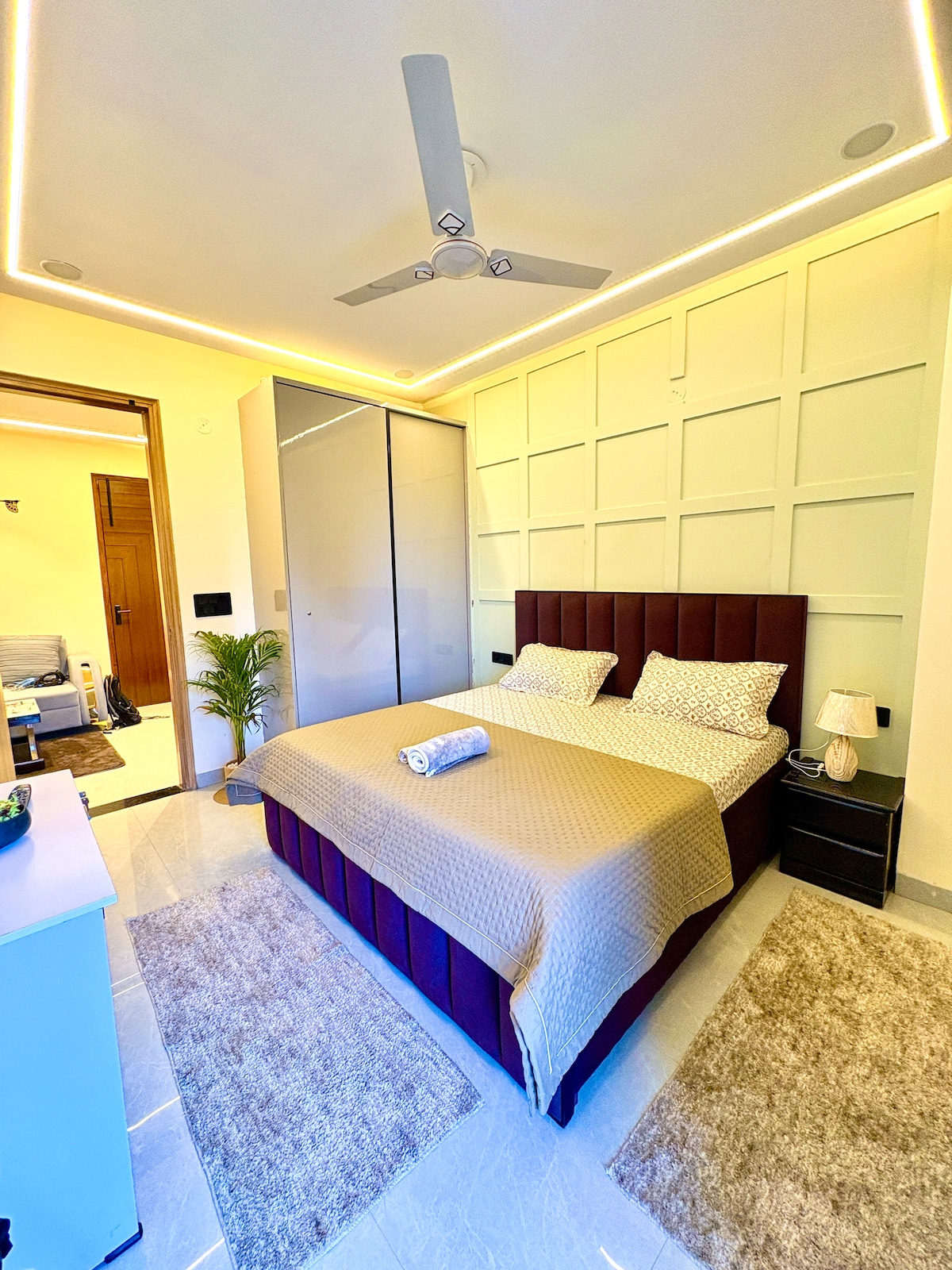 Your Stylish 2BHK in South Delhi Welcome to our beautiful 2-bedroom apartment, this corner gem is perfectly located in the heart of Lajpat Nagar, South Delhi. It is surrounded by lush green parks on 3 sides. Enjoy fully air-conditioned rooms, a well-equipped kitchen with utensils, LED TV, geysers for hot water, and even an elevator for hassle-free access. Its just a 2-minute walk from Lajpat Nagar market, where you’ll find shopping, food, etc. Only 4 minutes from the Lajpat Nagar Metro Station.