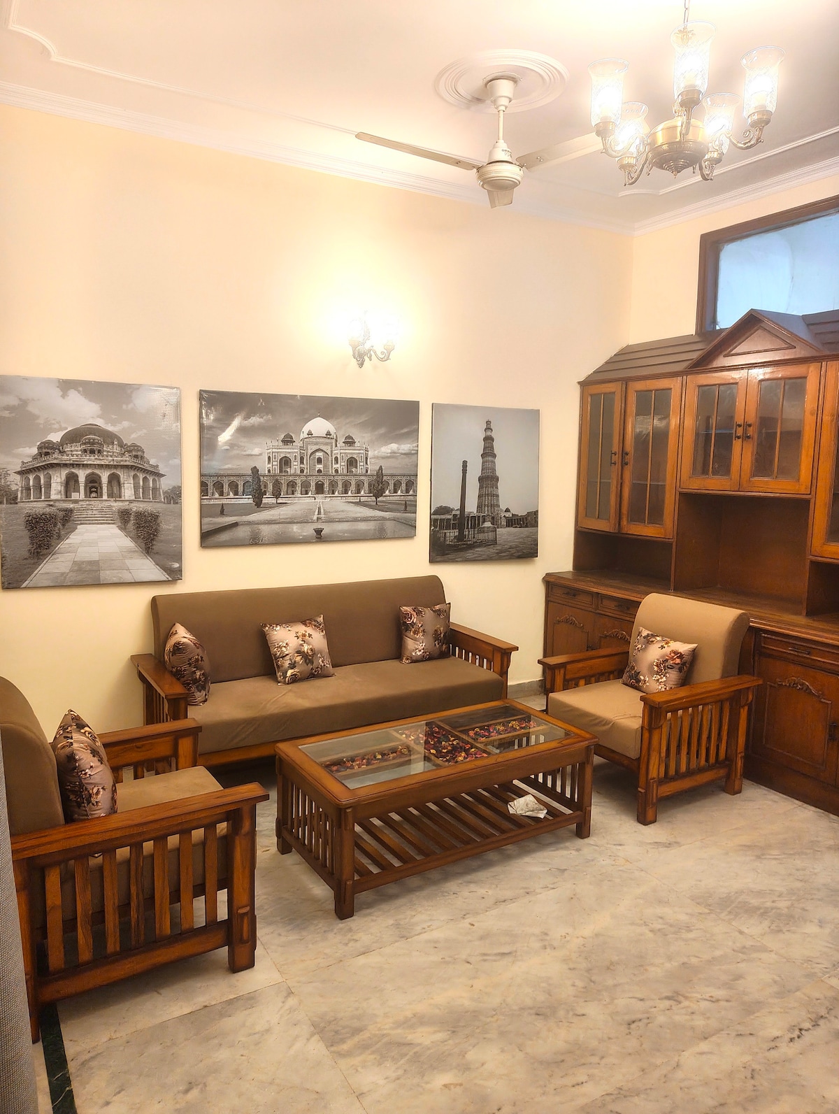 Do you want to bond with family, friends or colleagues in the lap of nature in New Delhi? Do you wish to experience the ideal blend of old-world charm and hospitality with all modern amenities? Do you desire to take a stroll in sprawling lawns under fruit trees or lie in wait for peacocks? If YES then this independent 3-bedroom apartment of Shiv Niwas villa, with private balconies & roof terrace, smart locks, property-wide high-speed Wi-Fi, free car parking & caring lady caretaker-cooks BECKONS!