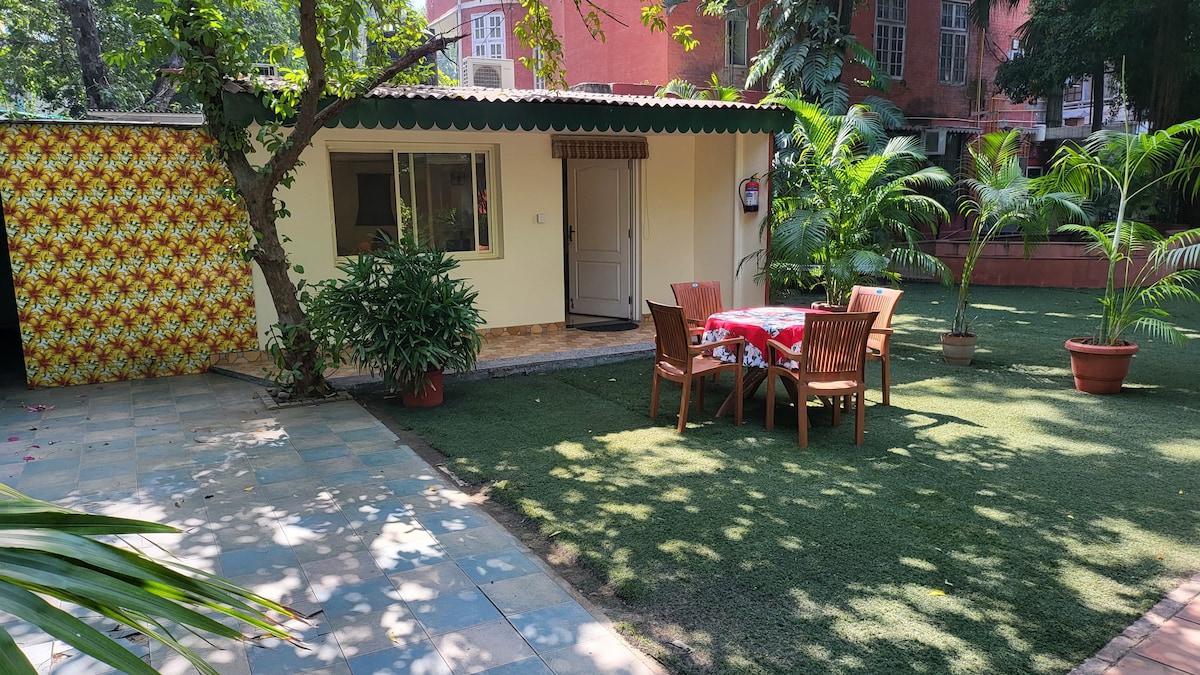 An independent spacious studio service apartment in our lower ground floor, east facing, sunshine, foliage, best for 4, at additional Rs.800 per person/night beyond 2 guests. Paradiso is upmarket with many expats and celebrities residing in locality. It is serene, central, close to Khan Market, CP, Janpath, Sunder Nursery/Central park and various metro stations. The electricity is billed seperately at Rs.10 per unit; Ventilated kitchenette with pipeline gas connection 24/7