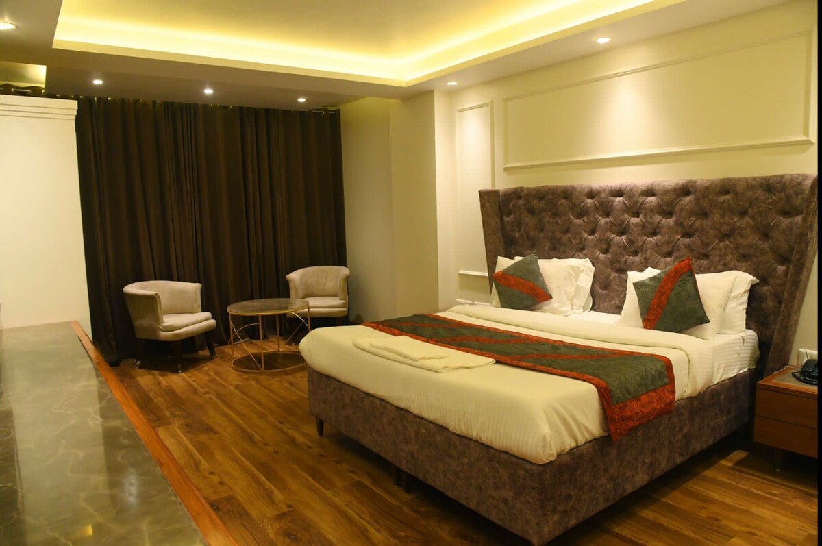 Experience our Luxury Hotel Room with Balcony in Sector 57, Gurgaon. Just minutes from Artemis Hospital, Golf Course Road, and Sector 54 Chowk Metro, it offers seamless access to the city. Perfect for medical, business, and leisure stays, the room combines modern comfort with elegance. Licensed to host foreign nationals. Early check-in will be subject to availability and chargeable Rs.500 as well as late checkout will also be the same with ₹500 added for every 3 hrs thereafter.