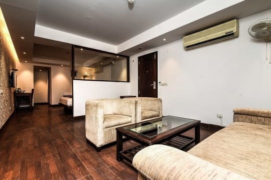 Its a Suite Room in a Boutique Hotel Royal Castle Grand C R Park. Interesting Features : -6 Feet Long Bed - 1Sofa cum Bed -65" Led Tv -500 Litres Refrigerator - 8 Sofa Seating Great for a family.