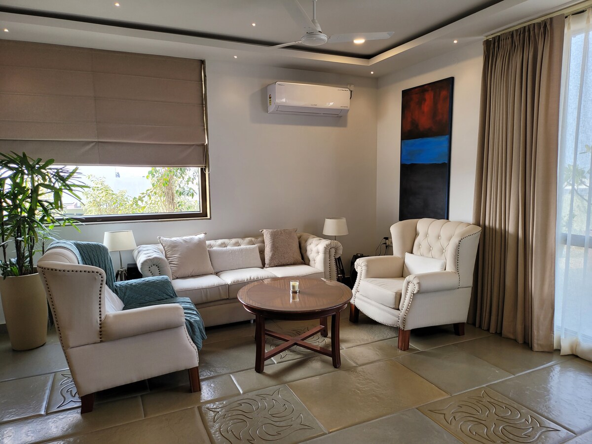 If you are visiting with your Loved / Lusted One or as a Corporate Executive for a short/long stay, our aesthetically designed suite with private terrace overlooking lush biodiversity park just 20 min from the Airport and close to popular Watering holes, is a perfect choice. 55" smart TV, optical fibre wifi, JBL 9 Sound bar, mood sparking lighting. luxury bath, housekeeping, private landscaped terrace, bar, dining, latex mattresses and huge mirror on the bed-headboard adds sensual naughtiness.