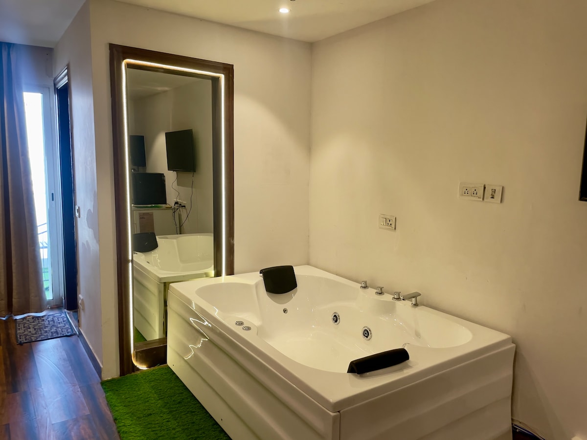Indulge in the epitome of sophistication in this luxury studio apartment in the heart of South Delhi in Saket. Nestled in a prime location, Enjoy a tastefully furnished space, complete with luxurious decor and ample natural light. With a King Size Bed, Large screen 43" Smart TV, Fully functional pantry and a stylish washroom, every detail caters to a refined lifestyle. Immerse yourself in comfort & convenience. Welcome to a blend of luxury and urban living