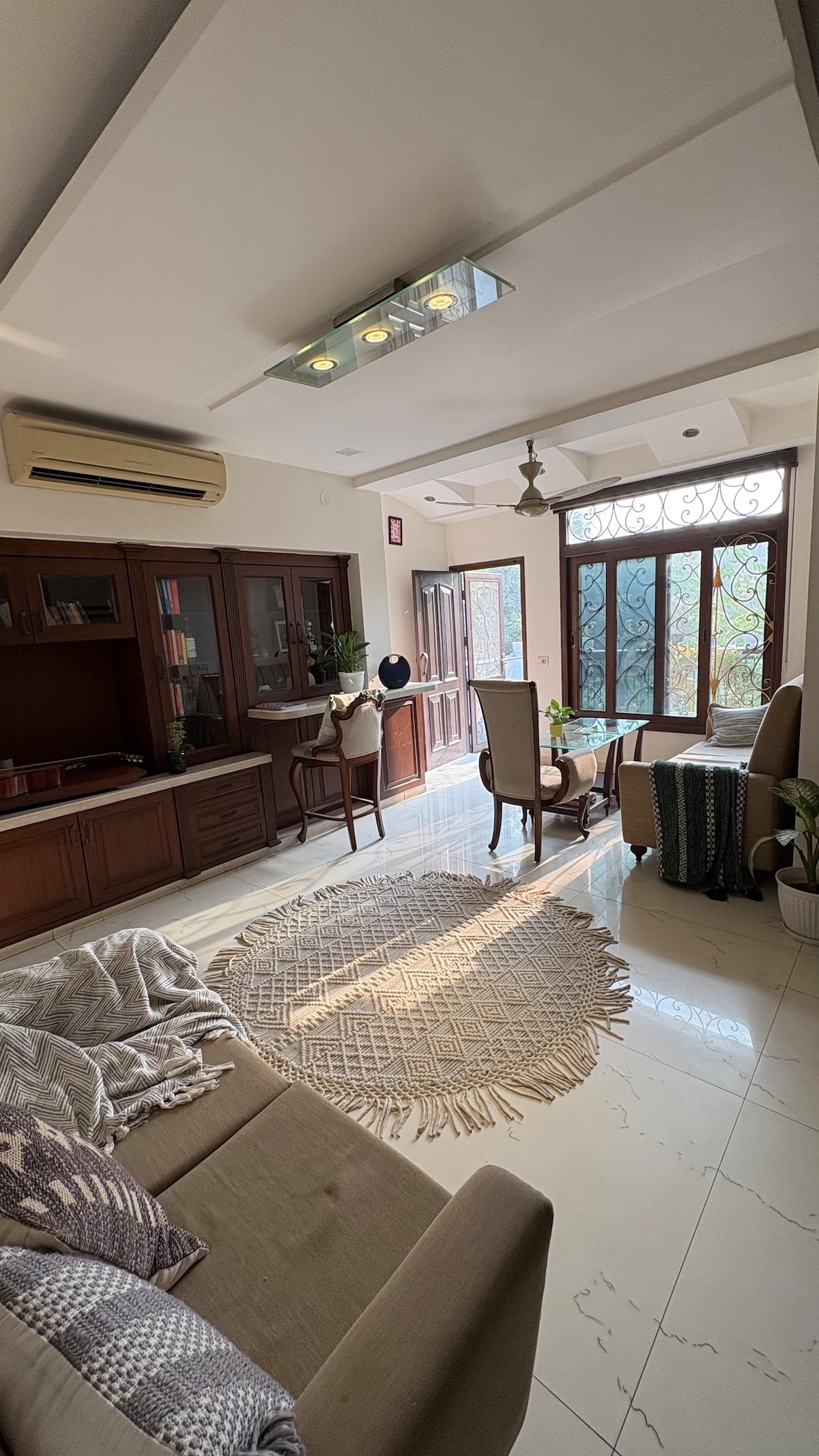 Experience South Delhi’s charm from this luxury 4BHK apartment in Hauz Khas. Steps from Hauz Khas Village, IIT Delhi and Deer Park, the home offers elegant interiors, ensuite bathrooms, smart TVs, a fully equipped kitchen and daily housekeeping. Ideal for family, business or medical guests visiting AIIMS or Bharat Mandapam. Enjoy seamless Wi-Fi, power backup and self check-in in a quiet, green neighbourhood. ✅ Book your South Delhi stay today! ✈️ Minutes from AIIMS, IIT and Bharat Mandapam