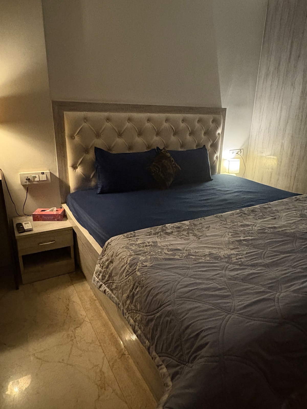 Welcome to our amazing suite which is situated on 15th floor of a high rise building. This 2bhk is completely fresh apartment. Wide private patio with city skyline view makes it unique in class. The place is perfect for relaxing and enjoying scenic view of modern architecture. Apartment is loaded with 3 smart tvs (all applications works), 2 cozy double bed, 2 big wardrobe with locker, 6 seater sofa, stylish coffee table,iron board, fridge,microwave,induction,electric kettle, toaster & much more