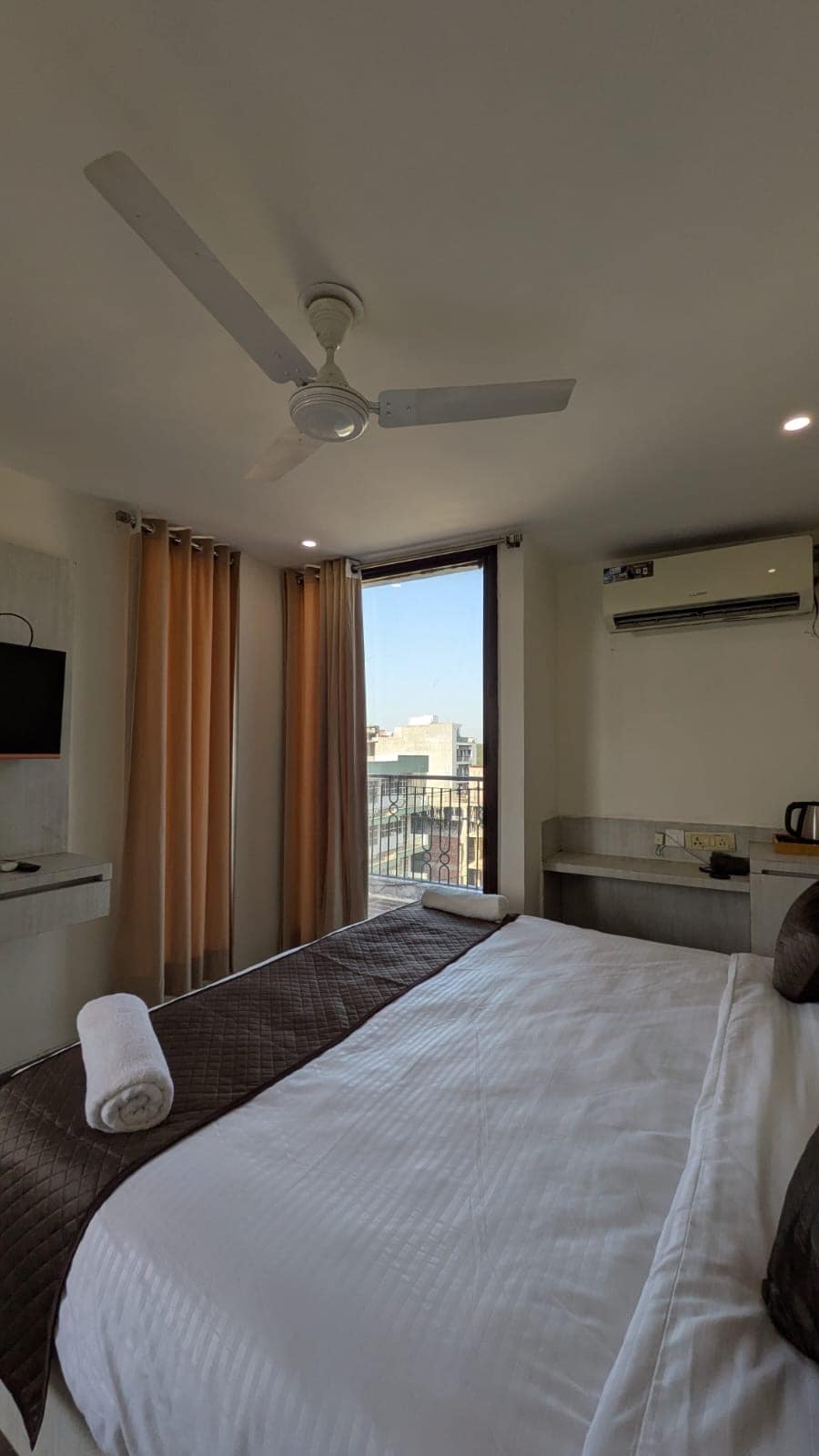 Experience our Luxury Room with Balcony in Sector 57, Gurgaon. Just minutes from Artemis Hospital, Golf Course Road, and Sector 54 Chowk Metro, it offers seamless access to the city. Perfect for medical, business, and leisure stays, the room combines modern comfort with elegance. Licensed to host foreign nationals. Early check-in will be subject to availability and chargeable Rs.500 as well as late checkout will also be the same with ₹500 added for every 3 hrs thereafter.