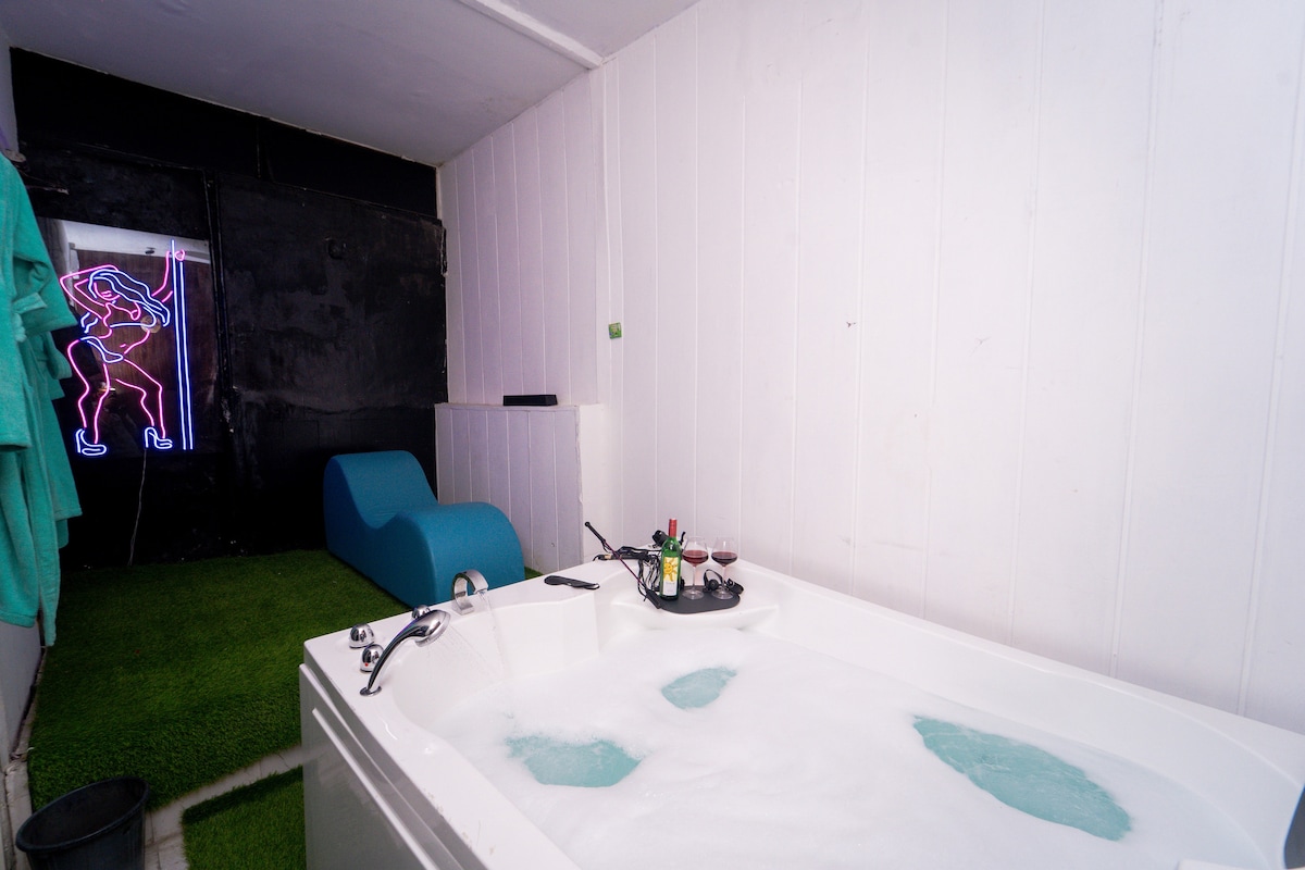Discover the best of Delhi with this 1 Bedroom-bathtub-kitchenette -1 private terrace - 1 private rooftop penthouse located at the poshest and premium locality of delhi south-Hauz khas clubbing lane with lavish and chic furnishing, In apartment home theater-AC-Fully equipped kitchen/Private bar .Massive bedroom . A beautifully kept centrally located penthouse with a 8-12 min drive to Qutab Minar,Delhi Haat ,Sarojini market and surrounded by deer park, lake and the best clubs - cafes of delhi.