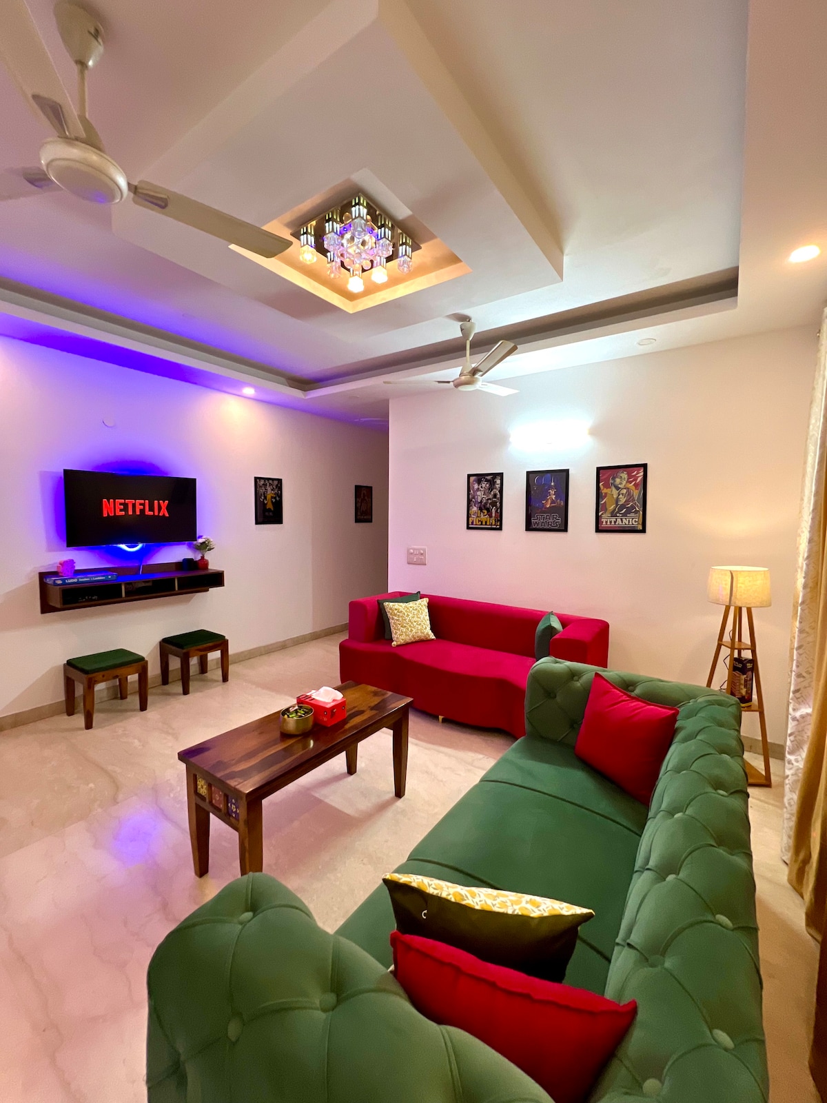 Step into “Hollywood Dreamz” — a 2BHK in Malviya Nagar where cinema meets luxury. Relive classics from Pulp Fiction to Titanic on our Walk of Fame binge nights. Unwind in 2 lush patios, play darts, UNO, Jenga or just soak in the sun. Spacious, vibrant interiors with a personal touch, Netflix/Prime/Disney+ included. Ground floor with lift access. A cinematic escape you’ll never forget!