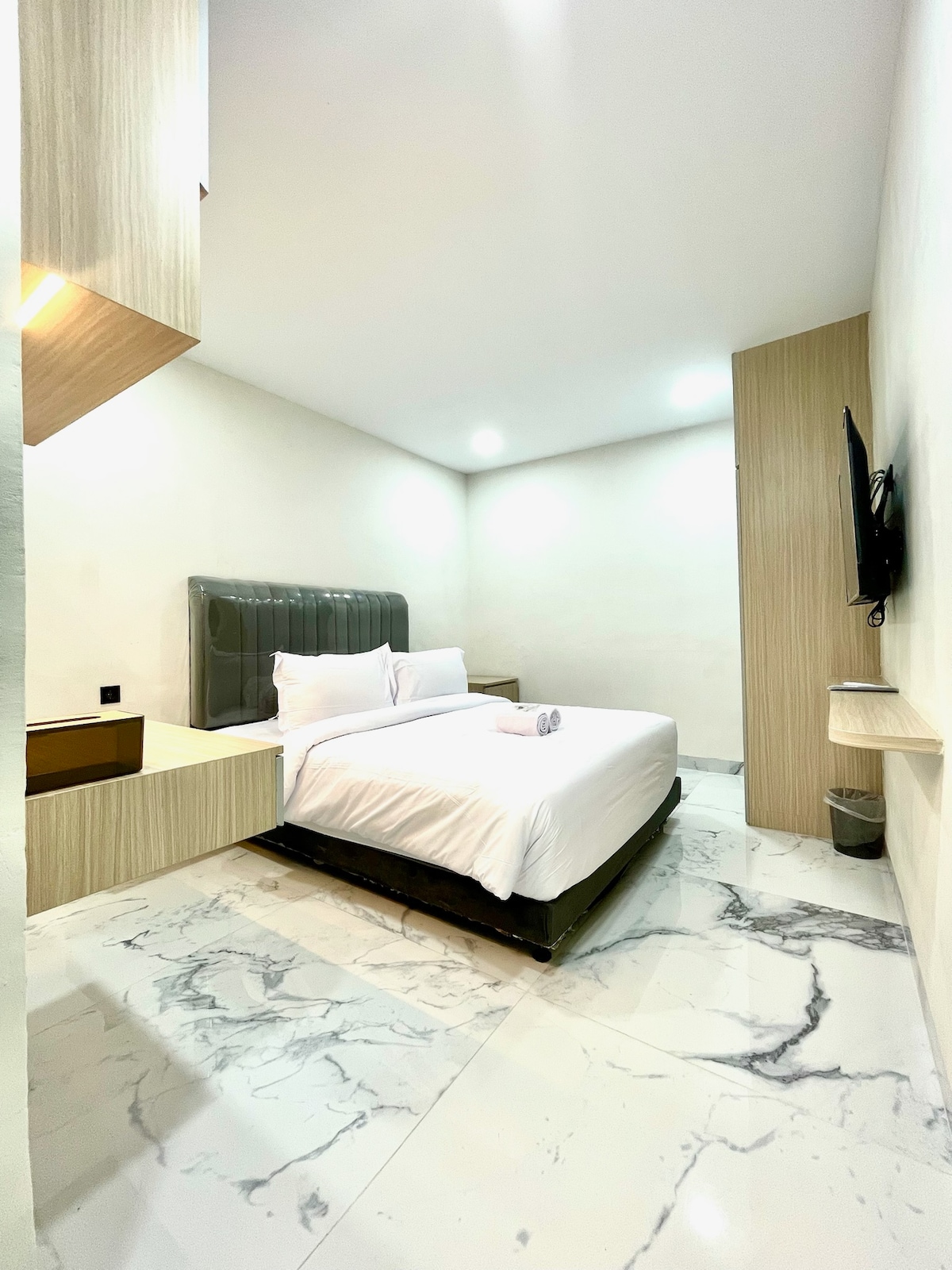 We are Senyaman Homes. Experience the comfort of staying in a modern room with a minimalist and elegant touch. Luxurious marble floors, warm lighting, and neat furnishings create a serene atmosphere perfect for rest. 📍 Strategic Location: • Near culinary centers, cafes, and popular restaurants such as "Ucok Durian, Richeese Factory, Wongsolo, Bunda Thamrin" • Minutes from malls • Business area • Safe and comfortable environment 💡 Suitable for: • Solo travelers • Couples • Business guests