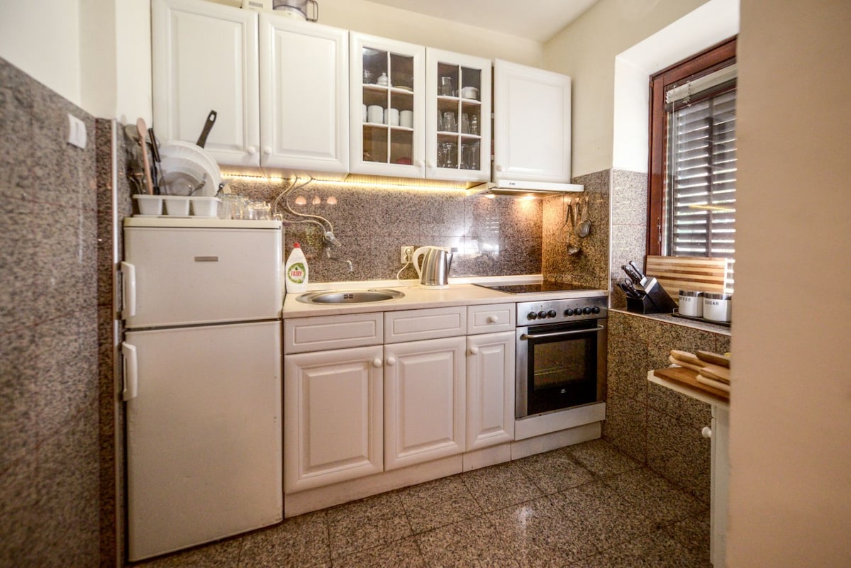 This beautiful open-space apartment with a garden view, located just 20min away from the city center, offers a quite bit of heaven where you can kick back and relax with your family and friends. The garden is a wonderful space for smaller gatherings (up to 15 people), BBQing in the sun, or just enjoying the relaxing breeze and sounds of the Zvezdara forest.