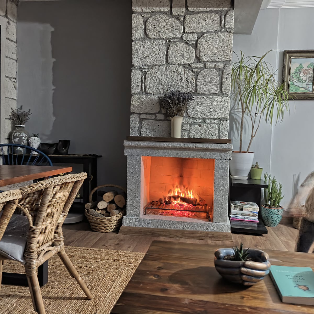 Leyla的房子在冬季布置中,有壁炉