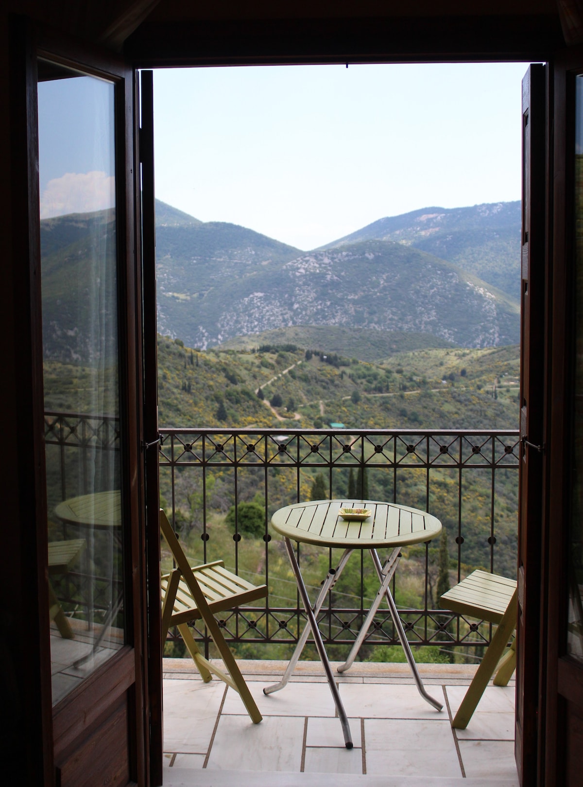 Traditional wood and stone apartment with a beautiful view to the village and the mountains of the area. The apartment is within walking distance (300m) from the main road. It can accommodate up to 6 people, offering a double bed in the bedroom, two sofas which can be converted into beds in the living room, and a bunk bed in the hall. The kitchen is fully equipped with coffee filter machine and toaster. Moreover, there is a separated bathroom and a restroom.
