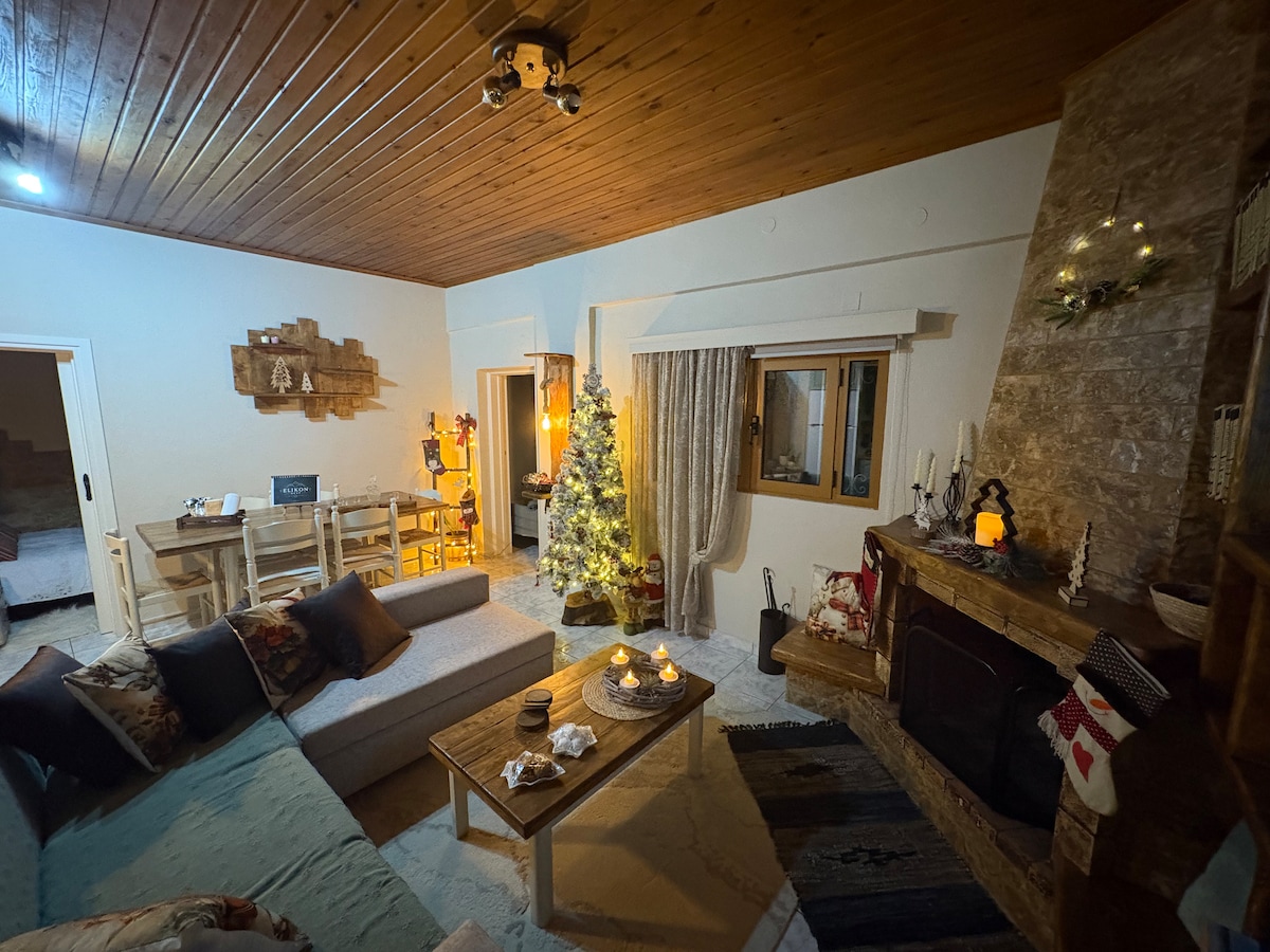 A magical stone house with a fireplace and a wonderful veranda. Ideal for a couple or a group of friends. The large veranda offers incredible views of Mount Parnassus, creating the perfect setting for romantic and unforgettable moments. Enjoy the warmth of the fireplace on cold winter nights and relax in the beautiful yard with fresh air during the summer. This house combines traditional Greek architecture with all modern amenities, offering you relaxation in a picturesque landscape.