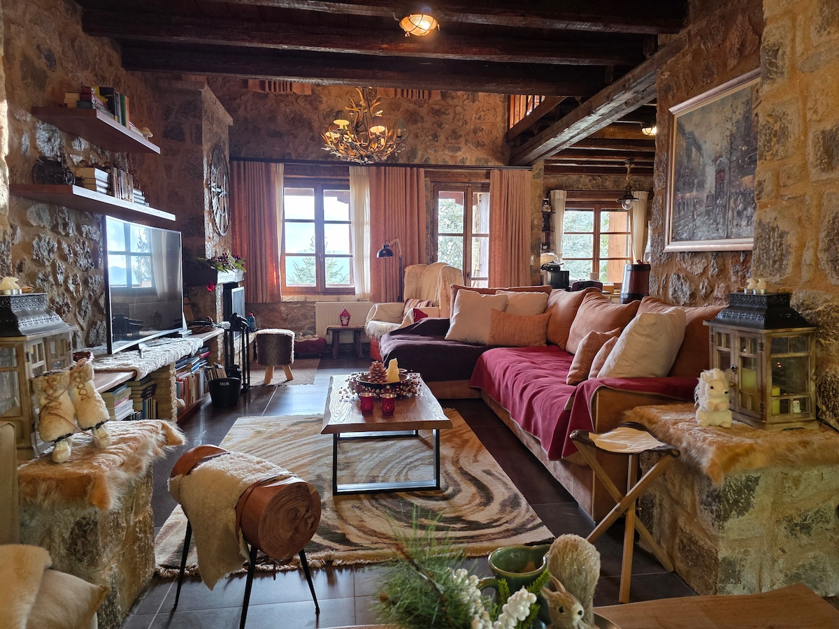 Immerse yourself in the rustic charm of the Parnassus Woodstone Chalet, situated in the scenic Ano Polydrosos area of Mount Parnassus, just 11 km away from the ski center of Parnassus. This captivating three-story chalet invites you to experience the warmth of woodstone aesthetics, creating a cozy and welcoming atmosphere for your mountain retreat.