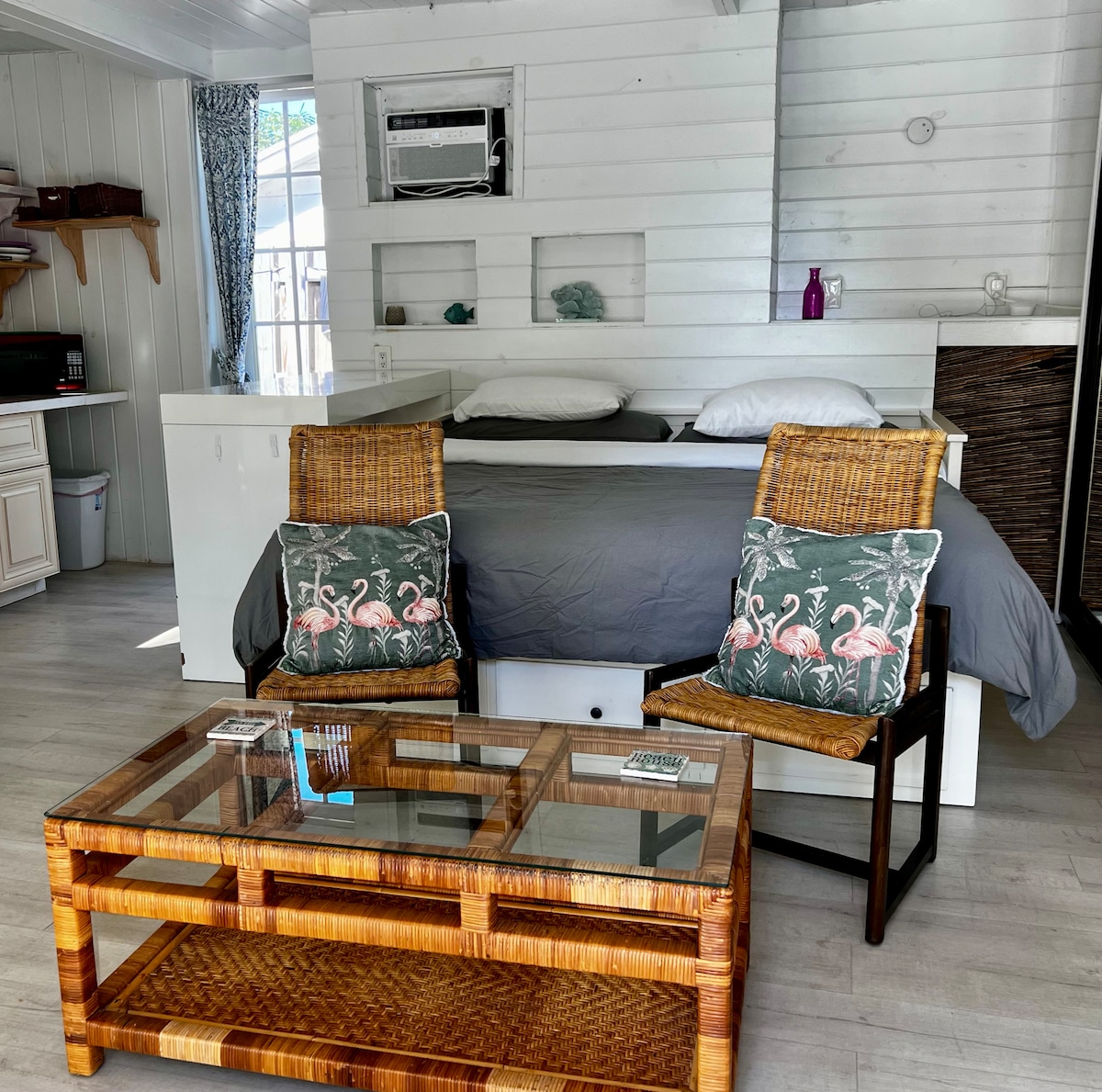 This cute tropical studio is the perfect place to relax on a short getaway. Wake up to sunlight as you're surrounded by windows letting in natural light. Enjoy a king sized bed, heated pool, and hot tub. You are located 6 minutes from Atlantic Ave which is packed with bars and restaurants and 6 minutes from the beach. We provide you with everything you'll need, so pack your bags and come relax! *the backyard may shared with other listings.