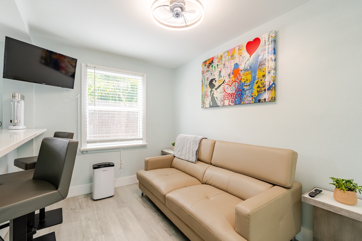 Escape the winter chill and celebrate the holidays in sunny Delray Beach! The Happy Mango Hideaway is a private 2-bedroom, pet-friendly cottage featuring a heated saltwater pool, spa-style bathroom (renovated Oct 2025), full kitchen, fast Wi-Fi, and cozy workspace. Walk to Atlantic Ave’s shops, cafés, and nightlife, or unwind in your fenced tropical yard. Perfect for holiday travelers, snowbirds, and remote workers seeking sunshine and serenity.