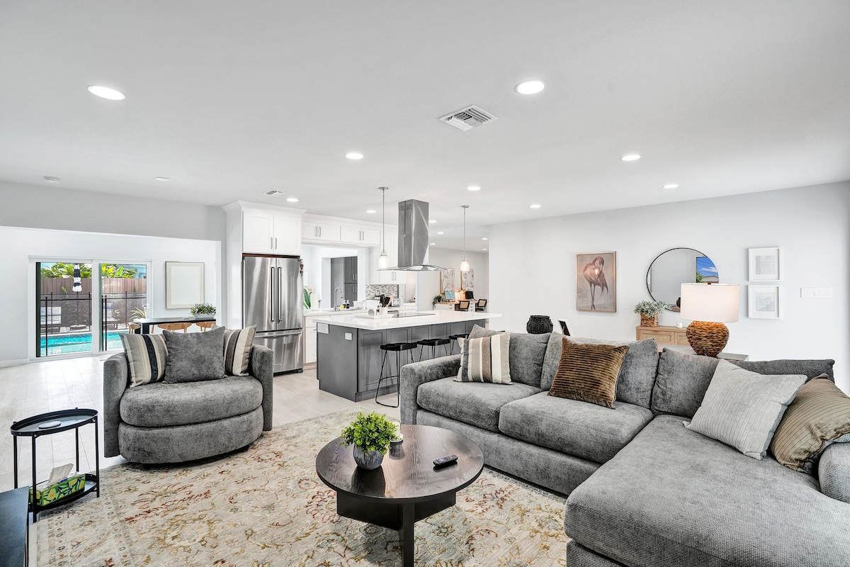 This Luxurious private home in beautiful Boca Raton is only a short drive to the beach. Enjoy ultimate privacy in our brand new heated pool and jacuzzi. Plenty of shopping and restaurants all within minutes. Kick back and relax in this newly renovated, ultra private, luxury vacation home. Just bring your suitcase and bathing suit and enjoy! Fully stocked kitchen with all you'll need........Indoor or out. Desk/ Workstation for home office and five oversized Smart TV's for entertainment.