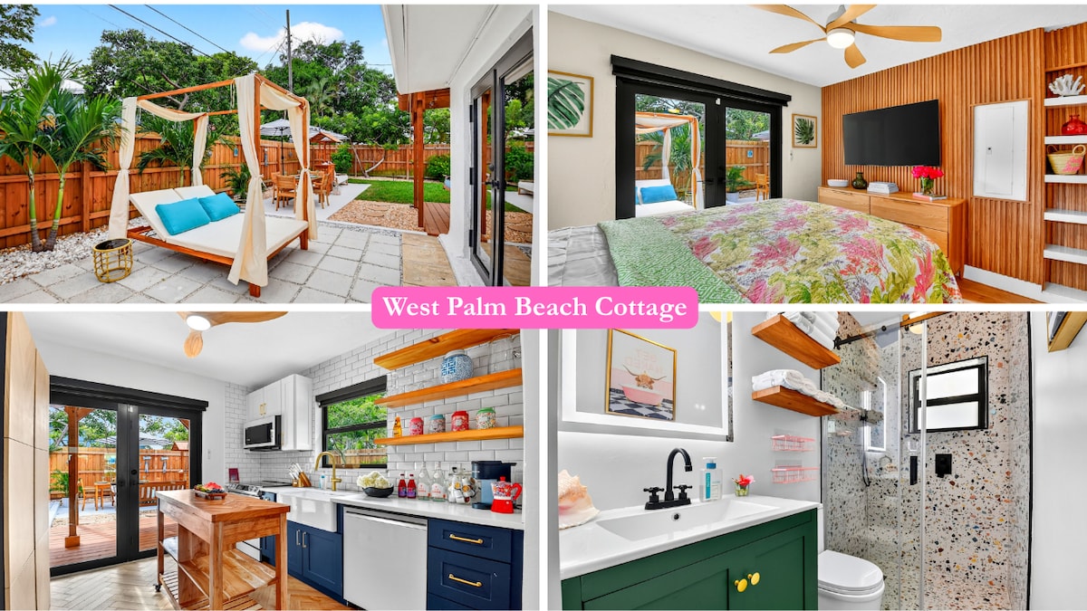 • 6 blocks to downtown restaurants, boutiques, bars (Atlantic Ave) • 10 blocks to beach 🏝 • 1940's Key West style bungalow & private cottage • Tropical fenced-in backyard, pool & deck • Freebee™ Electric cart rides all over Delray Beach • Cozy, comfy, beachy interior • Secure, keyless entry w/ parking for 3 cars • Coffee + Tea bar • All chef essentials provided, dog-friendly, infant pack-n-play, outdoor BBQ, washer & dryer, beach chairs/towels/umbrella, 2 cruiser bikes, pool floats & more 🏖