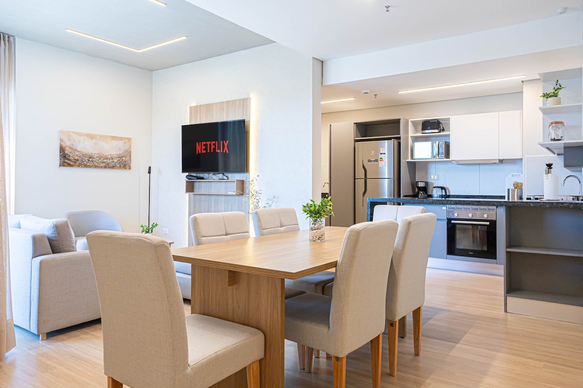 Elegante y cómodo, este departamento combina modernidad y confort a pasos del shopping Del Sol & Galería. Disfrutá de un espacio seguro, silencioso y luminoso, con Wi‑Fi rápido, ropa de cama premium, cocina equipada y los mejores amenities para sentirte como en casa. Ideal y listo para el verano: piscina, gym y terraza. Rodeado de cafeterías, comercios y supermercados, es el sitio ideal para descansar, trabajar o disfrutar de la ciudad con estilo.